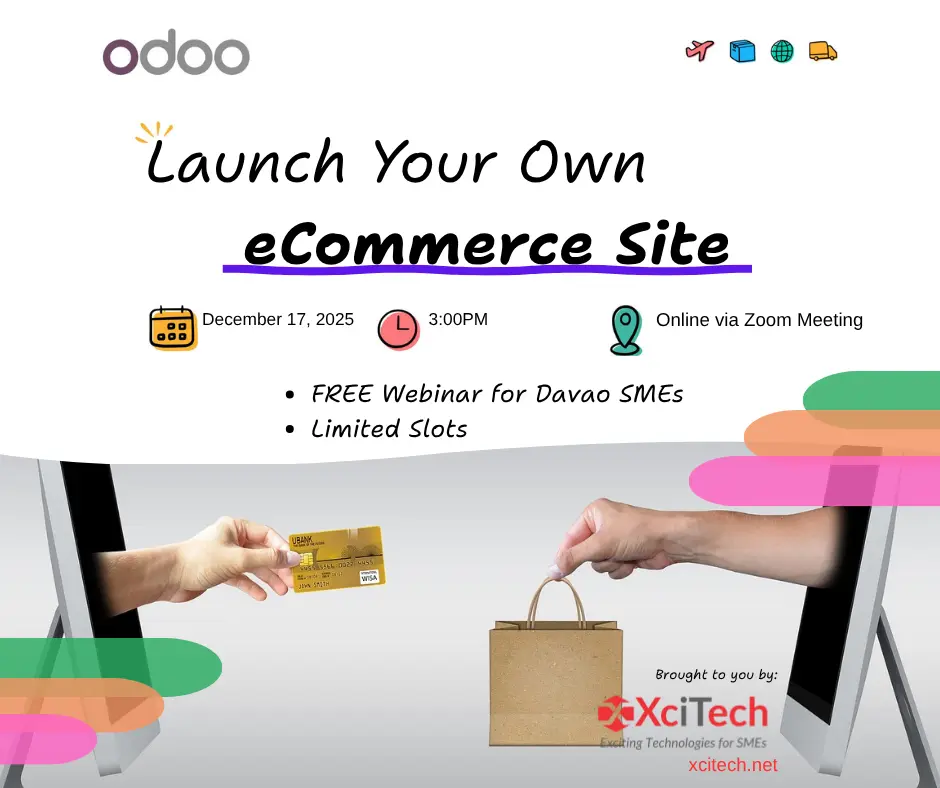 Discover how you can easily create and manage your own online store with Odoo eCommerce. This free webinar will guide Davao SMEs through the essentials of setting up a fully functional and professional eCommerce website — from product listings to online payments. Join us on December 17, 2025, at 3:00 PM via Zoom and start your digital journey today!